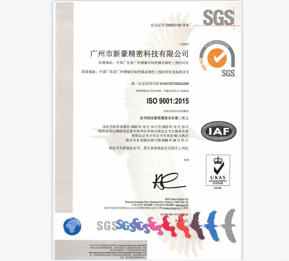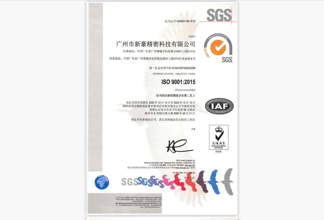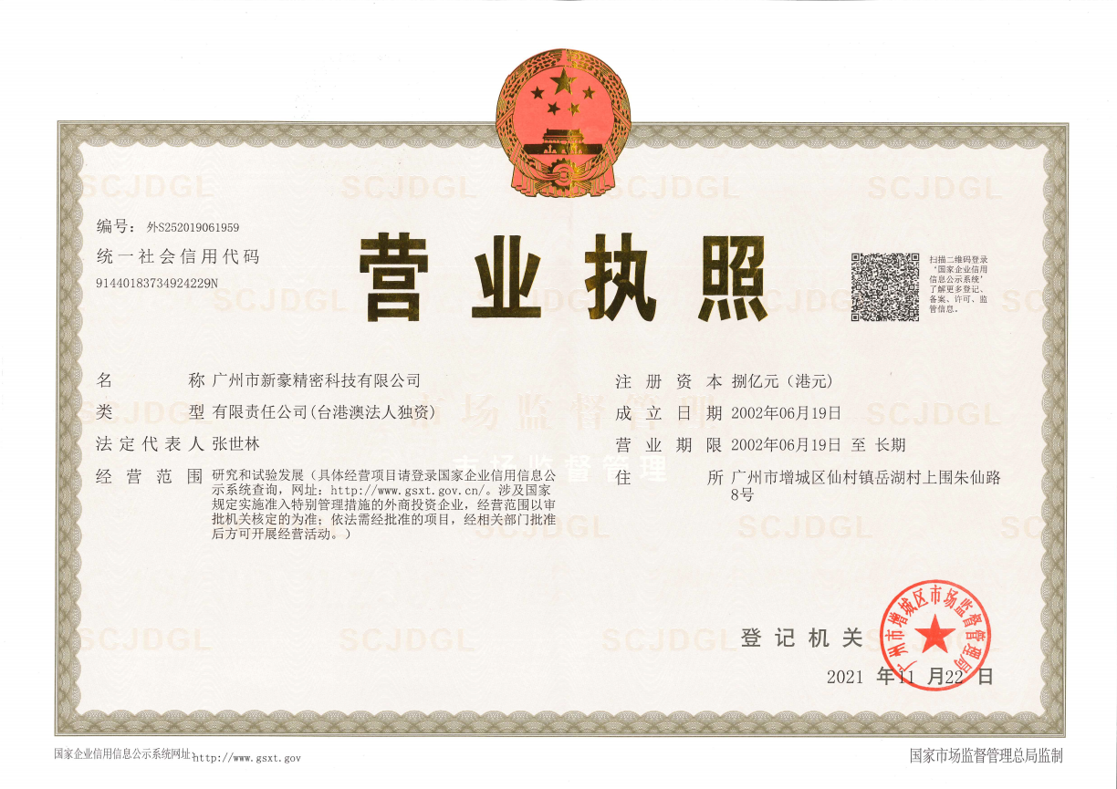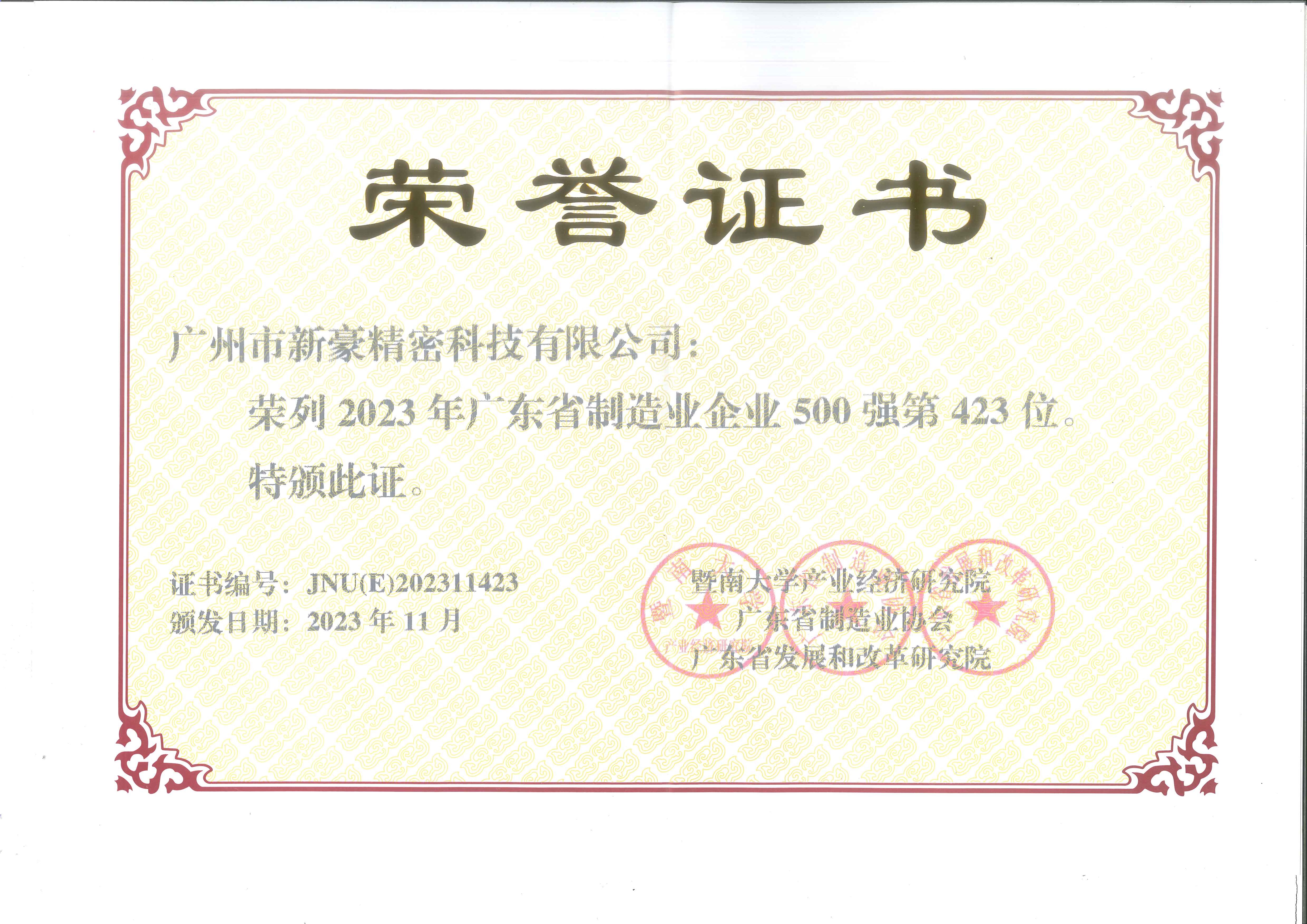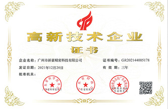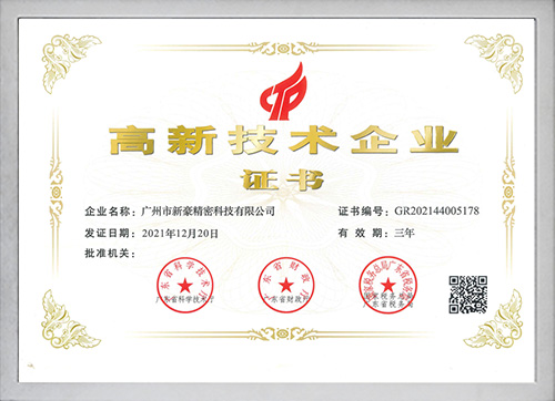 IPE Group Guang Zhou Xinhao Precision Metal Products Co., Ltd. was certified as a high-tech enterprise.