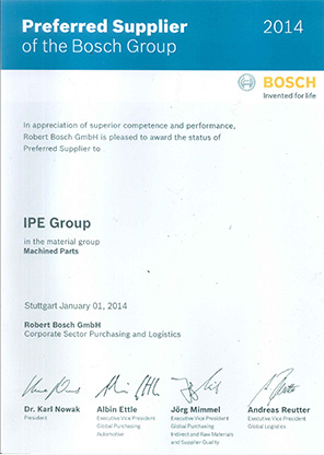 IPE Group's automotives products are exported overseas. With its excellent product quality, it has been awarded the honor of excellent supplier and "excellent supplier" by European and American first-class automotives manufacturers for many times, and has established long-term and stable cooperative relations with customers of Fortune 500 companies, including GM, Bosch, Continental Group, BorgWarner, Danfoss, etc., and has successfully become a high-precision manufacturing supplier of domestic hydraulic leading enterprises such as Hengli Hydraulic and Longgong Holdings.