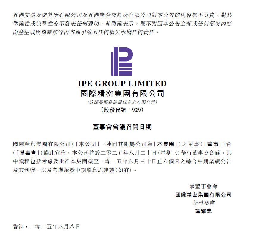 董事會會議召開日期