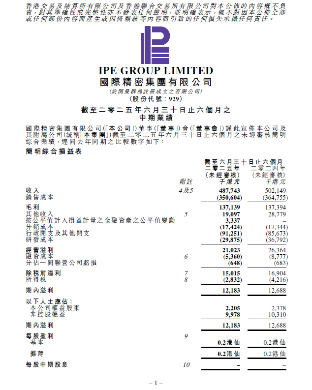 截至二零二五年六月三十日止六個月之中期業績